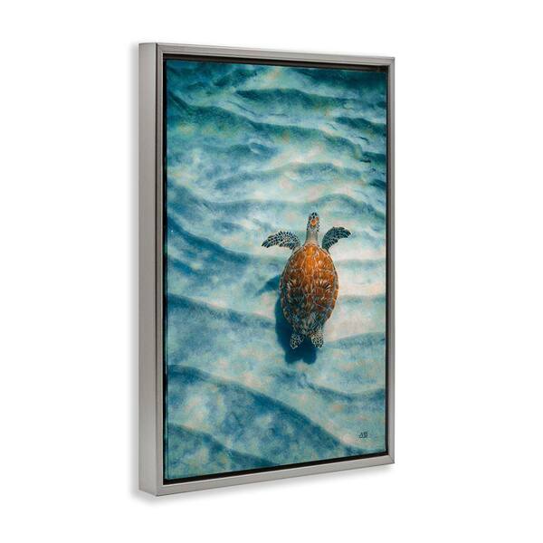 Turtle Along Rippling Sand by Max Blakesberg Studios Gray Floater Frame Animal Graphic Art Print 25 in. x 17 in.