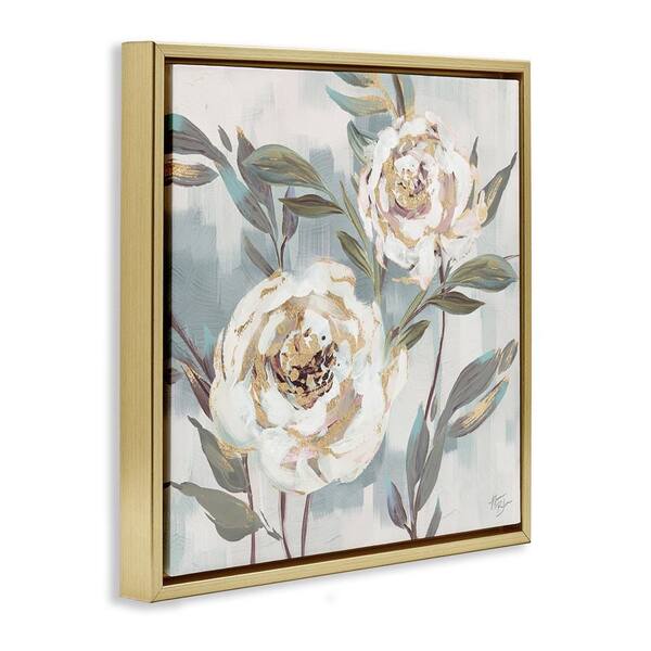 Two Country Blossoms by Nina Blue Gold Floater Frame Nature Graphic Art Print 25 in. x 25 in.