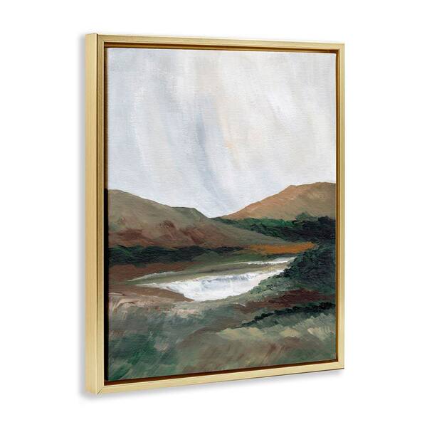 Two Mountains with Pond by Nikita Jariwala Gold Floater Frame Nature Graphic Art Print 31 in. x 25 in.