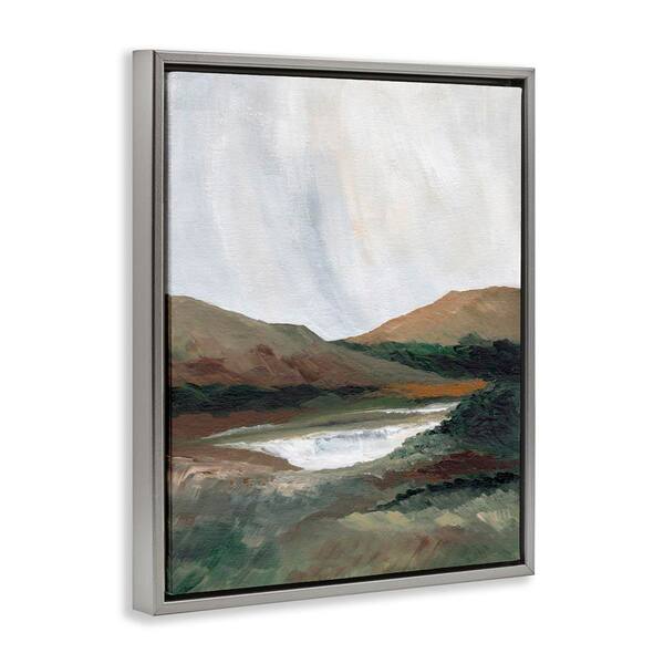 Two Mountains with Pond by Nikita Jariwala Gray Floater Frame Nature Graphic Art Print 31 in. x 25 in.