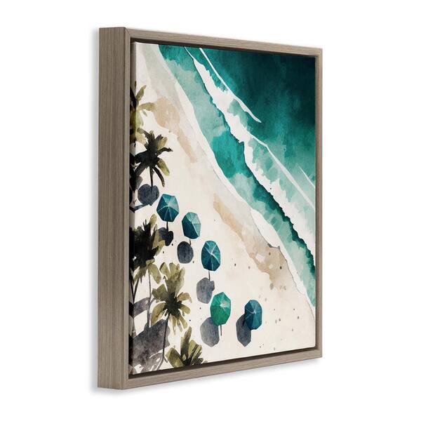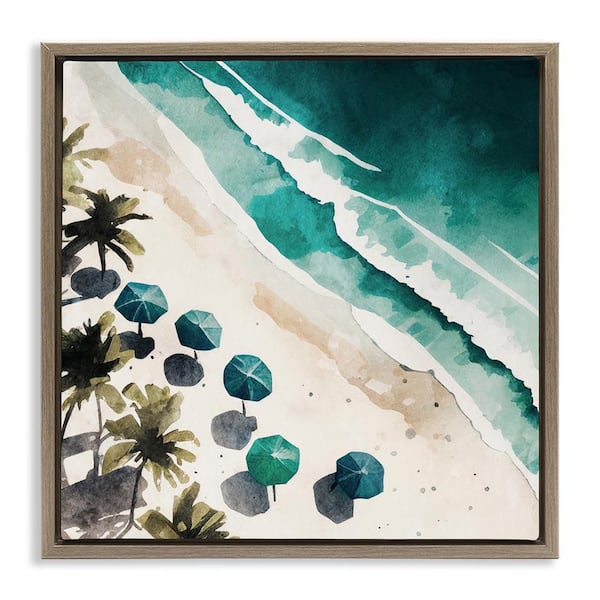 Umbrella Lined Coast by Svetlana Aleynikova Brown Floater Frame Coastal Graphic Art Print 25 in. x 25 in.