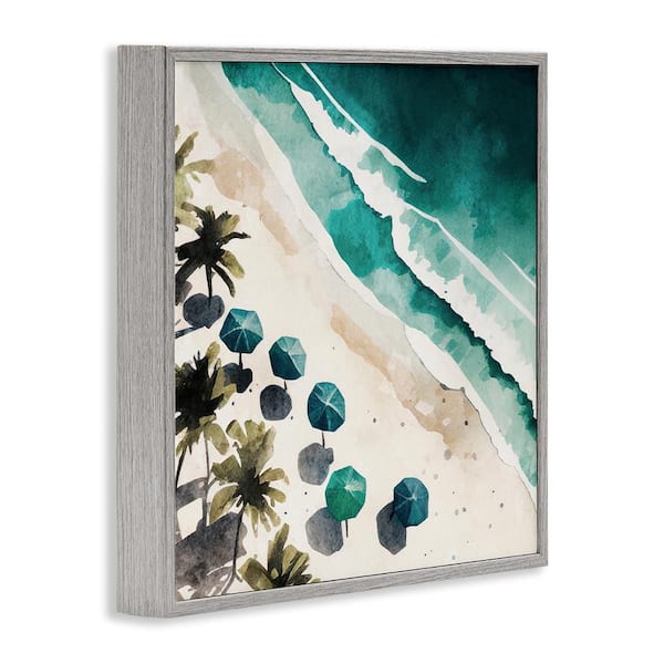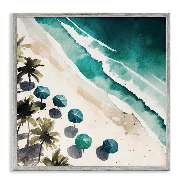 Umbrella Lined Coast by Svetlana Aleynikova Gray Framed Coastal Giclee Art Print 12 in. x 12 in.