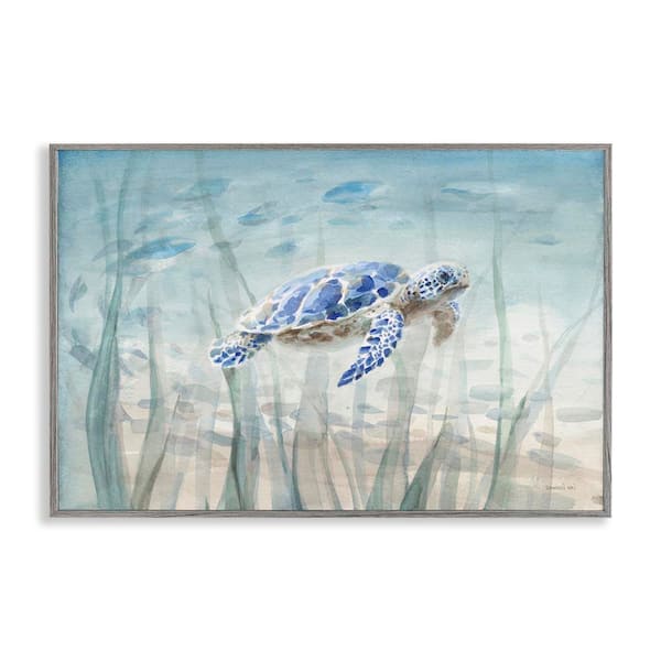Undersea Turtle Swim by Danhui Nai Gray Framed Animal Giclee Art Print 16 in. x 24 in.