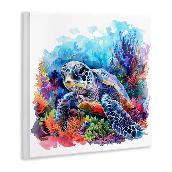 Undersea Turtle and Coral by LSR Design Studio Unframed Animal Graphic Art Print 12 in. x 12 in.