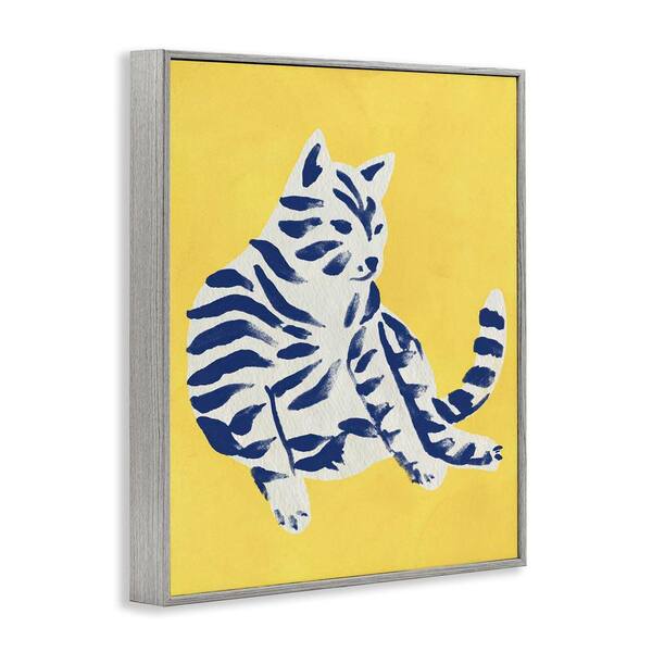 Unique Bright Cat on Yellow by June Erica Vess Gray Framed Animal Giclee Art Print 20 in. x 16 in.