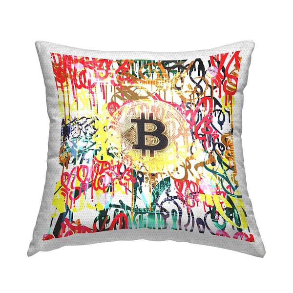 Urban Bitcoin Graffiti Multi-Color Square Outdoor Throw Pillow
