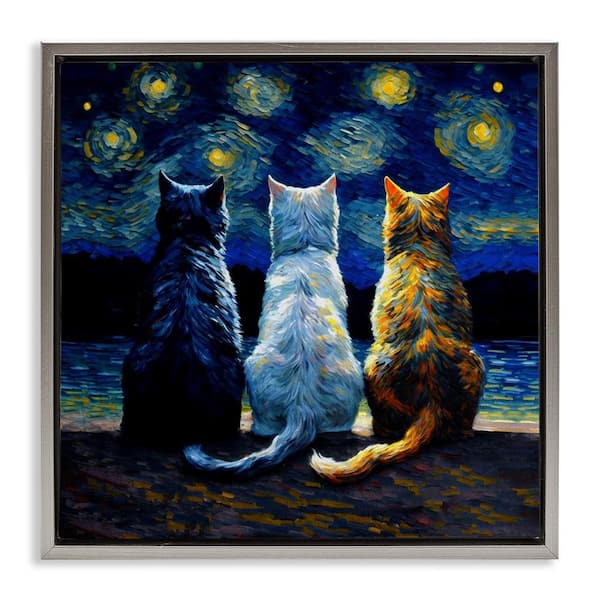 Van Gogh Style Cats by Svetlana Aleynikova Gray Floater Frame Animal Graphic Art Print 18 in. x 18 in.