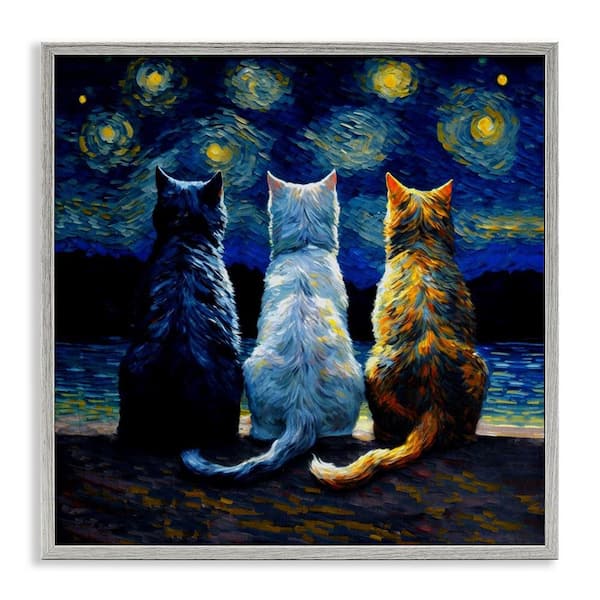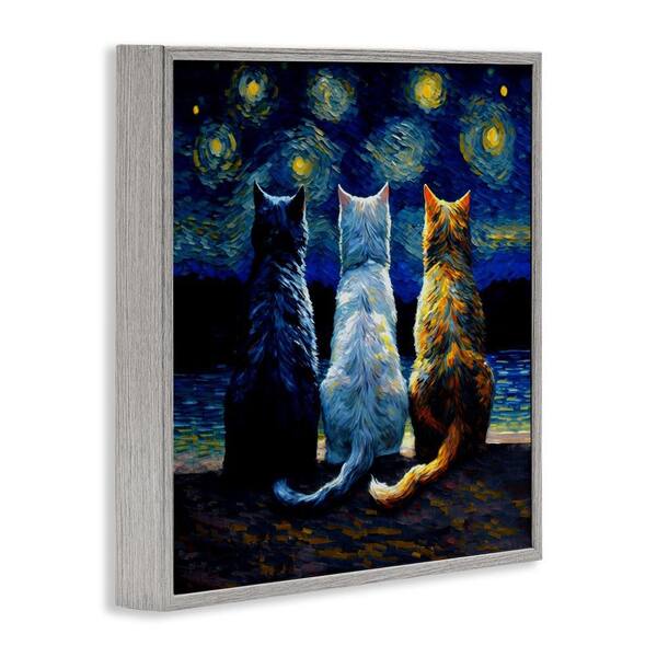 Van Gogh Style Cats by Svetlana Aleynikova Gray Framed Animal Giclee Art Print 12 in. x 12 in.