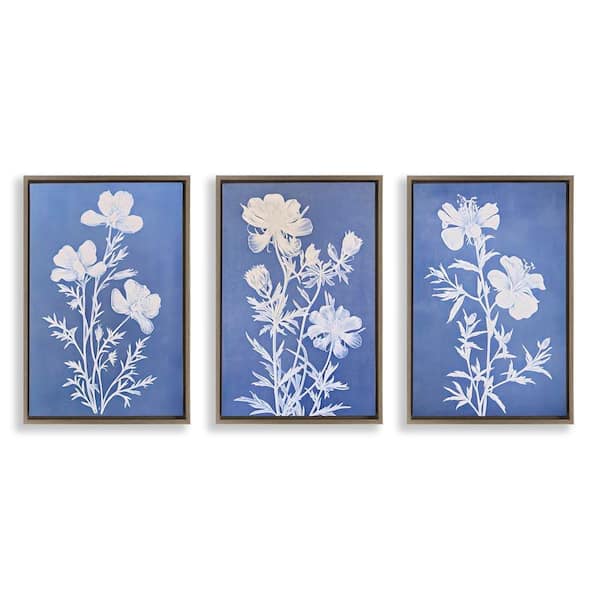 Varied Cerulean Botanicals by Petal Prints Design 3 Pieces Brown Floater Frame Nature Graphic Art Print 25 in. x 17 in.
