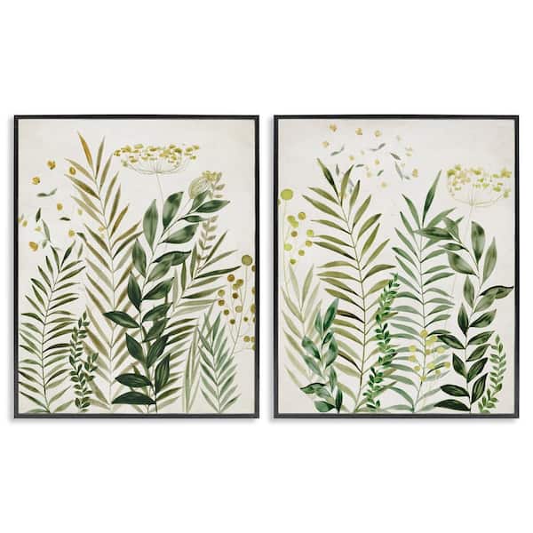 Varied Leaves and Fronds by Hannah Dawson 2 Pieces Black Framed Nature Giclee Art Print 30 in. x 24 in.