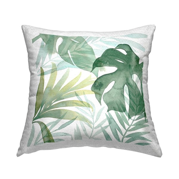 Varied Monstera Palm Leaves Green Square Outdoor Throw Pillow