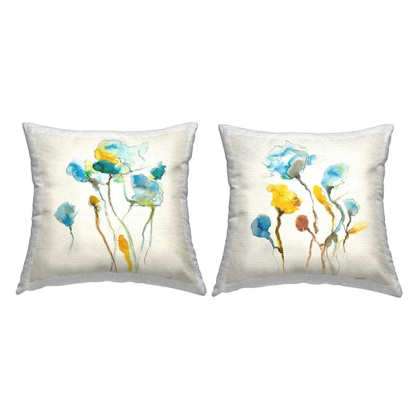 Varied Roses Abstract Plants Beige Square Outdoor Throw Pillow 2-Pack