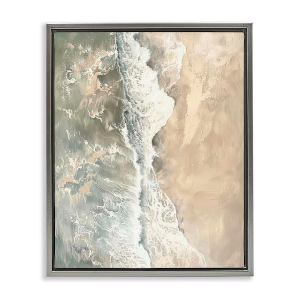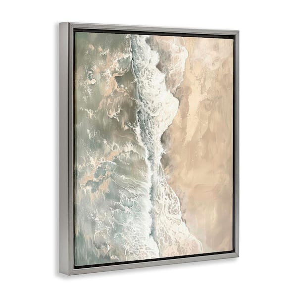 Vertical Aerial Beach by Petal Prints Design Gray Floater Frame Nature Graphic Art Print 31 in. x 25 in.