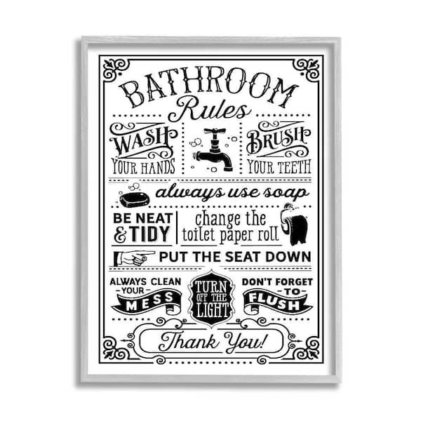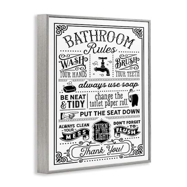 Vintage Bathroom Rules Diagram List by Lettered and Lined 1-Piece Gray Framed Abstract Giclee Art Print 16 in. x 20 in.