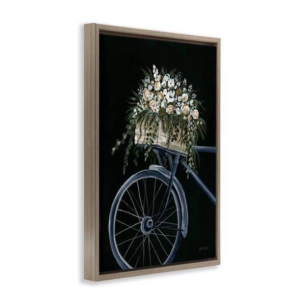 Vintage Bicycle with Florals by Yvette St. Amant Brown Floater Frame Nature Graphic Art Print 25 in. x 17 in.