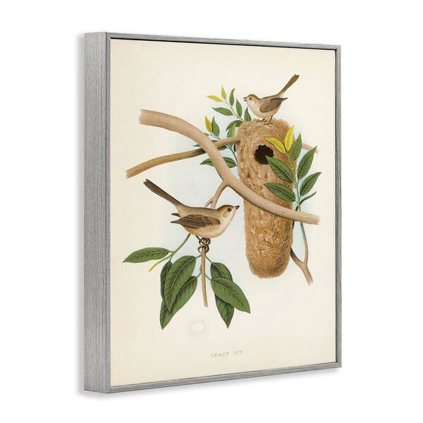 Vintage Bird House Study by Tina Higgins Designs, Inc. Gray Framed Nature Giclee Art Print 14 in. x 11 in.