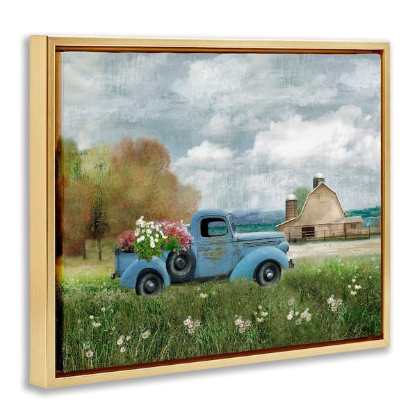 Vintage Blue Truck in Meadow by Nan 1 Piece Gold Floater Frame Nature Graphic Art Print 25 in. x 31 in.