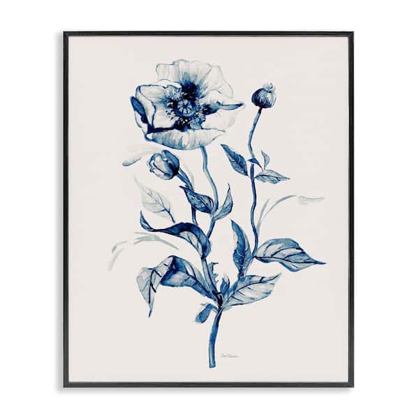 Vintage Budding Florals by Carol Robinson Black Framed Nature Giclee Art Print 14 in. x 11 in.