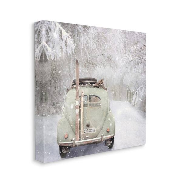 Vintage Buggy in Snow by LSR Design Studio 1-Piece Unframed Graphic Print Travel Poster Art Print 24 in. x 24 in.