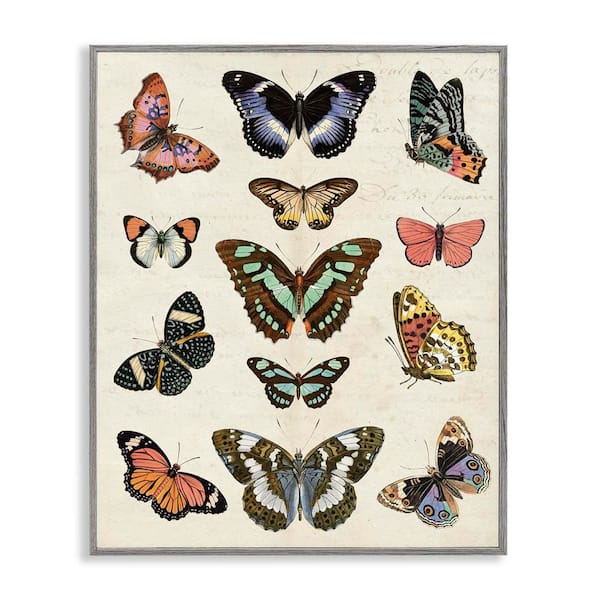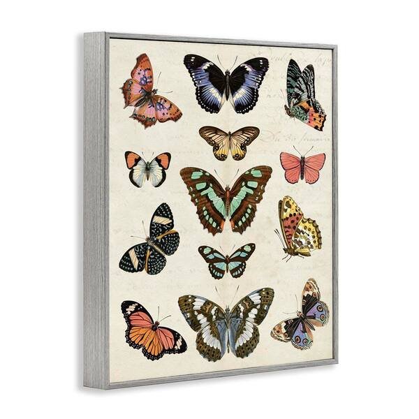 Vintage Butterfly Breeds by Susan Arnot Gray Framed Animal Giclee Art Print 30 in. x 24 in.