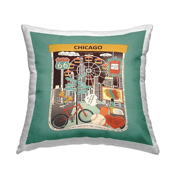 Vintage Chicago Landmarks Green Square Outdoor Throw Pillow