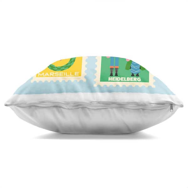 Vintage Christmas Postage Stamps Multi-Color Abstract Polyester 18 in. x 18 in. Throw Pillow