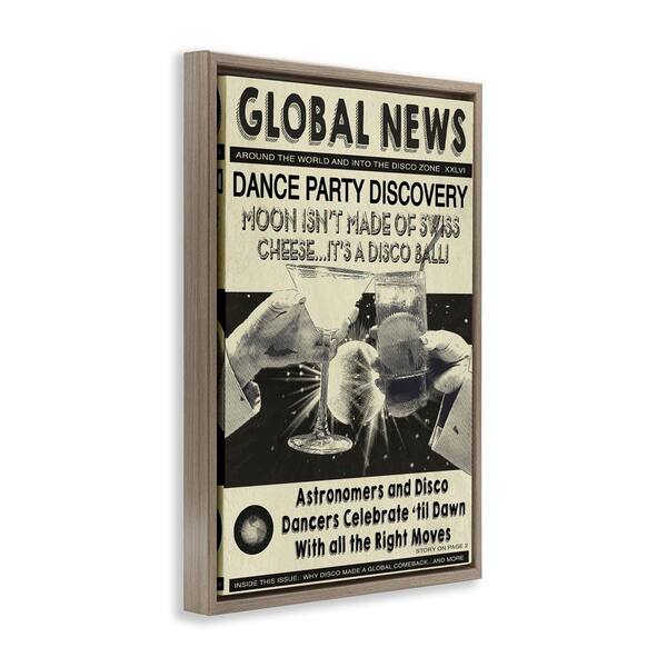 Vintage Disco News Article by Graffi*tee Studios Brown Floater Frame Music Graphic Art Print 31 in. x 21 in.