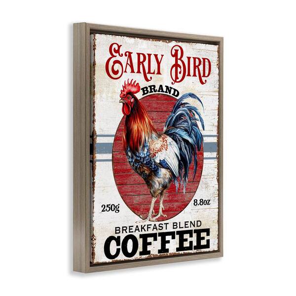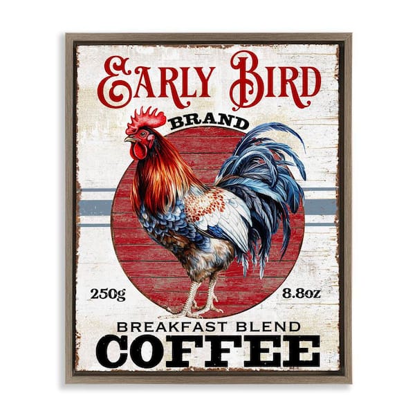 Vintage Early Bird Coffee by Creatif Belle Brown Floater Frame Food Graphic Art Print 21 in. x 17 in.
