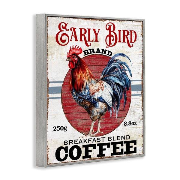 Vintage Early Bird Coffee by Creatif Belle Gray Framed Food Giclee Art Print 30 in. x 24 in.