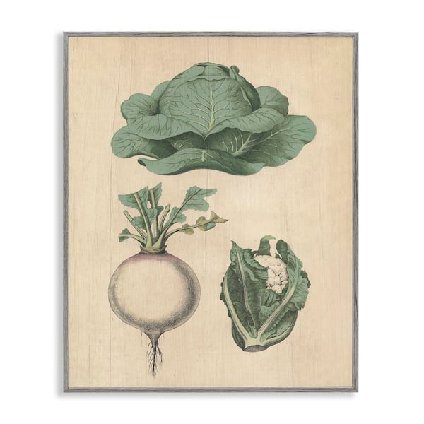 Vintage Garden Vegetables by Daphne Polselli Gray Framed Food Giclee Art Print 14 in. x 11 in.