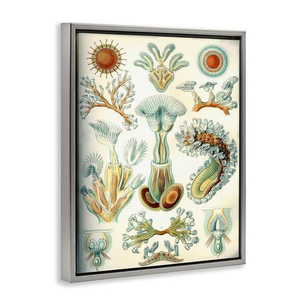 Vintage Haeckel Sea Life by Graffi tee Studios Gray Floater Frame Animal Graphic Art Print 21 in. x 17 in.