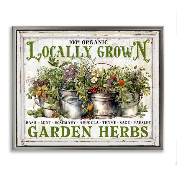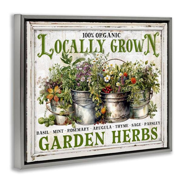 Vintage Herbs in Buckets by Creatif Belle Gray Floater Frame Nature Graphic Art Print 25 in. x 31 in.