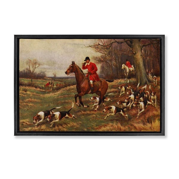 Vintage Hunting Party Dogs by Tina Higgins Designs, Inc. Black Floater Frame People Graphic Art Print 17 in. x 25 in.