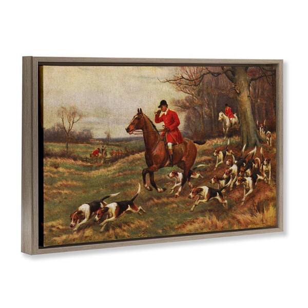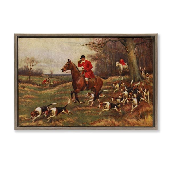 Vintage Hunting Party Dogs by Tina Higgins Designs, Inc. Brown Floater Frame People Graphic Art Print 21 in. x 31 in.