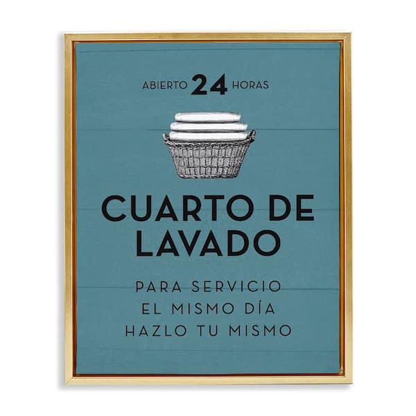 Vintage Laundry Ad Blue by Lettered and Lined Gold Floater Frame Typography Graphic Art Print 31 in. x 25 in.