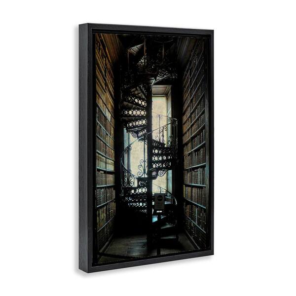 Vintage Library Spiral Stairs by Graffi tee Studios Black Floater Frame Architecture Graphic Art Print 31 in. x 21 in.
