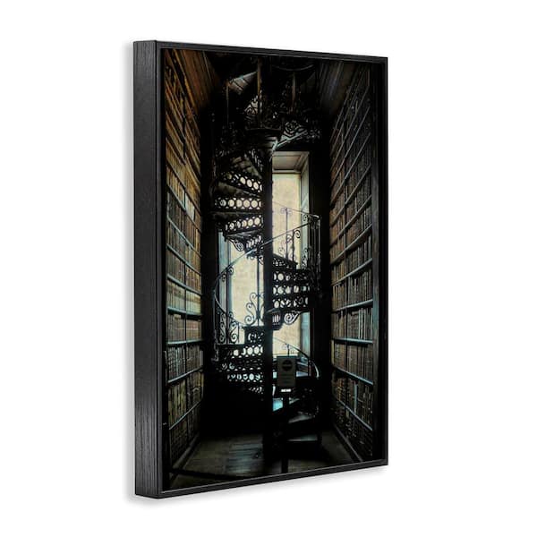 Vintage Library Spiral Stairs by Graffi*tee Studios Black Framed Architecture Giclee Art Print 24 in. x 16 in.