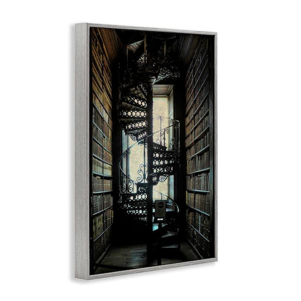 Vintage Library Spiral Stairs by Graffi*tee Studios Gray Framed Architecture Giclee Art Print 18 in. x 12 in.