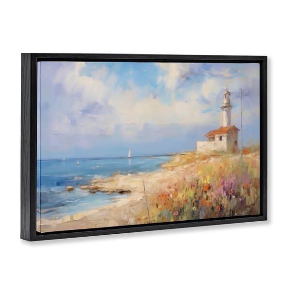 Vintage Lighthouse View by LSR Design Studio Black Floater Frame Nature Graphic Art Print 17 in. x 25 in.