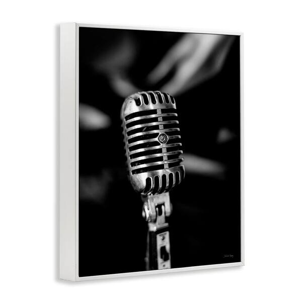 Vintage Microphone on Black by Jennifer Rigsby White Framed Music Giclee Art Print 30 in. x 24 in.
