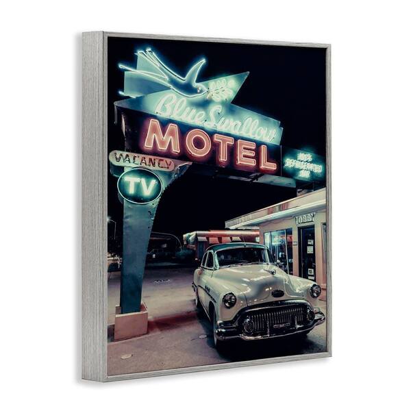 Vintage Motel Getaway Car by Graffi*tee Studios Gray Framed Typography Giclee Art Print 14 in. x 11 in.