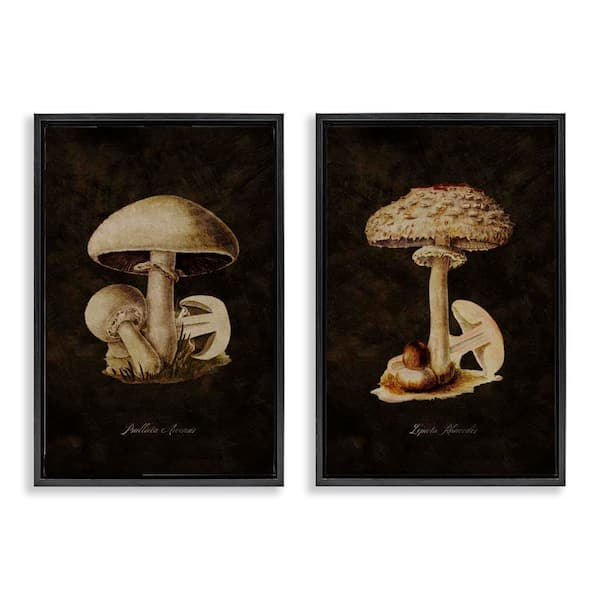 Vintage Mushrooms by Tina Higgins Designs, Inc. 2-Pieces Black Floater Frame Nature Graphic Art Print 31 in. x 21 in.