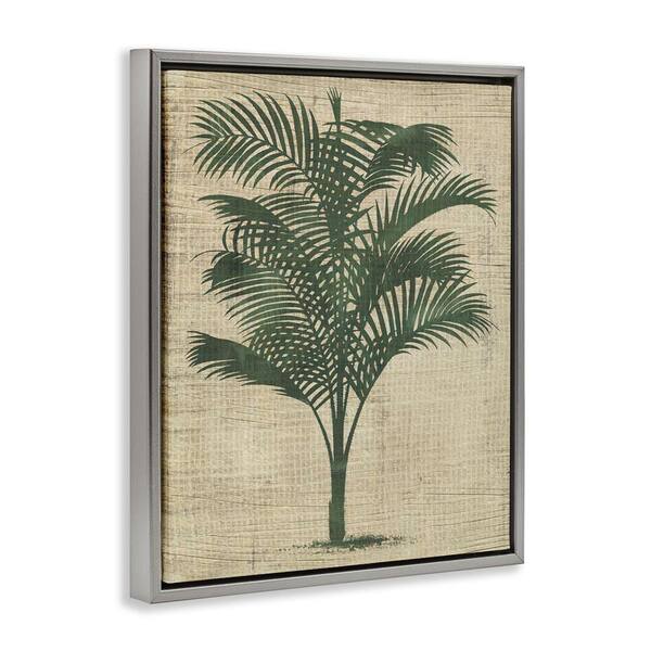 Vintage Palm Plant by June Erica Vess Gray Floater Frame Nature Graphic Art Print 31 in. x 25 in.