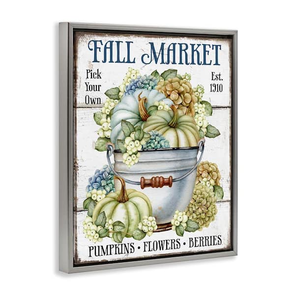 Vintage Pumpkins and Hydgrangea by Creatif Belle Gray Floater Frame Graphic Typography Art Print 21 in. x 17 in.