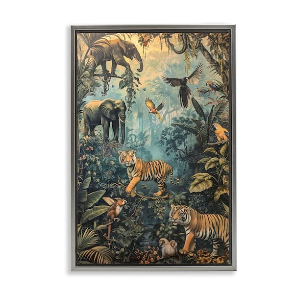 Vintage Rainforest Jungle by Franklyn Gregory Gray Floater Frame Nature Graphic Art Print 25 in. x 17 in.