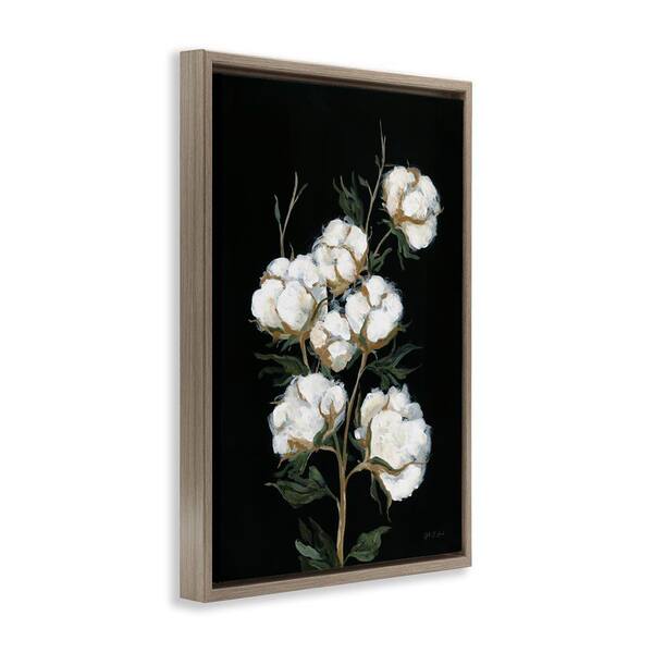 Vintage Stems of Cotton by Yvette St. Amant Brown Floater Frame Nature Graphic Art Print 25 in. x 17 in.