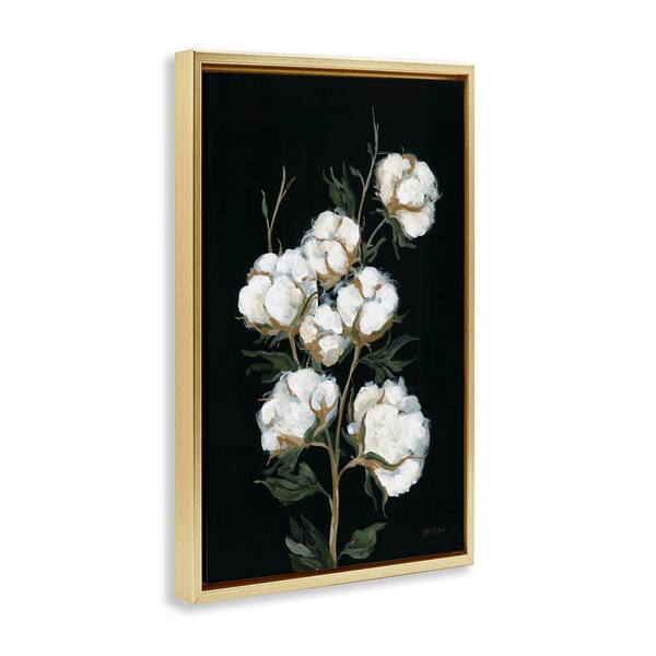 Vintage Stems of Cotton by Yvette St. Amant Gold Floater Frame Nature Graphic Art Print 31 in. x 21 in.