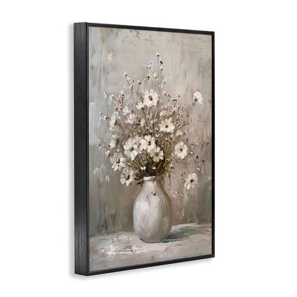 Vintage Still Life Daisies by LSR Design Studio Black Framed Nature Giclee Art Print 24 in. x 16 in.