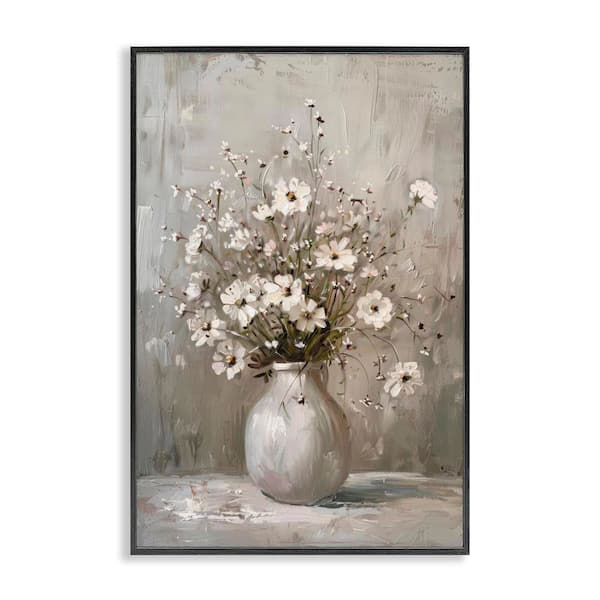 Vintage Still Life Daisies by LSR Design Studio Black Framed Nature Giclee Art Print 30 in. x 20 in.