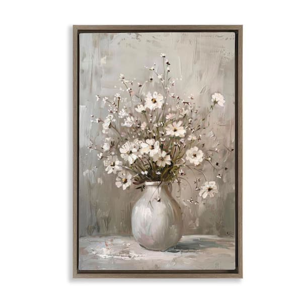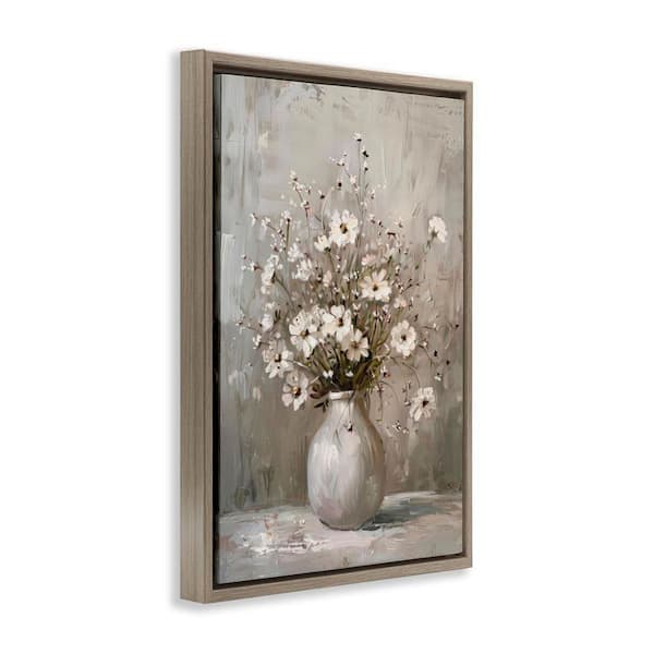 Vintage Still Life Daisies by LSR Design Studio Brown Floater Frame Nature Graphic Art Print 31 in. x 21 in.
